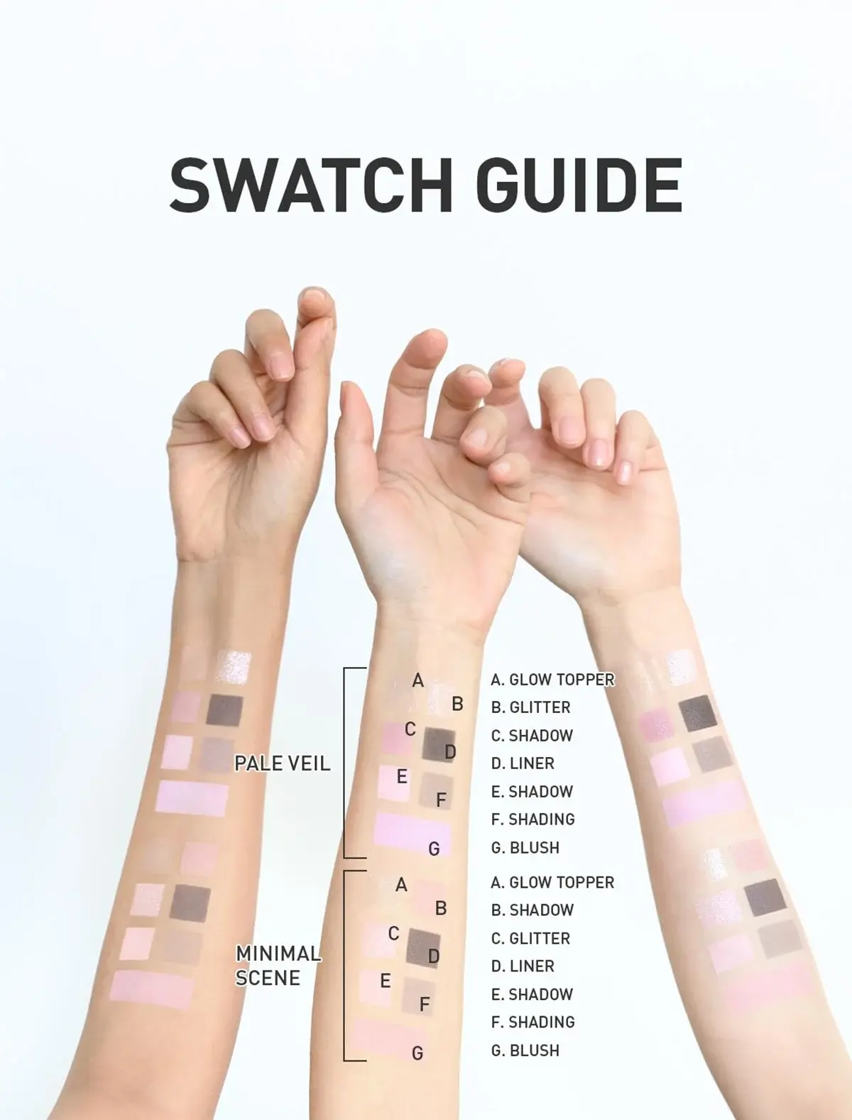 • Cohesive Look: The tone-on-tone color combinations in each palette variation (e.g., #Pale Veil and #Minimal Scene) are curated to ensure a harmonious and polished overall look.