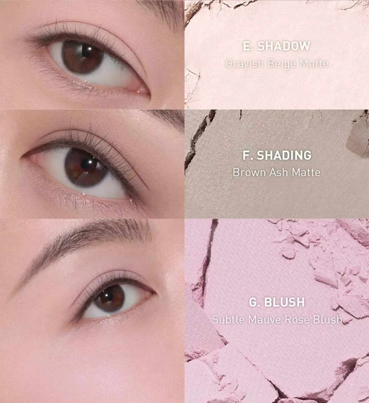 • Contour / Shading: Darker, matte shades are included for shading and contouring the face, which helps to sculpt the cheek hollows, jawline, and nose.
