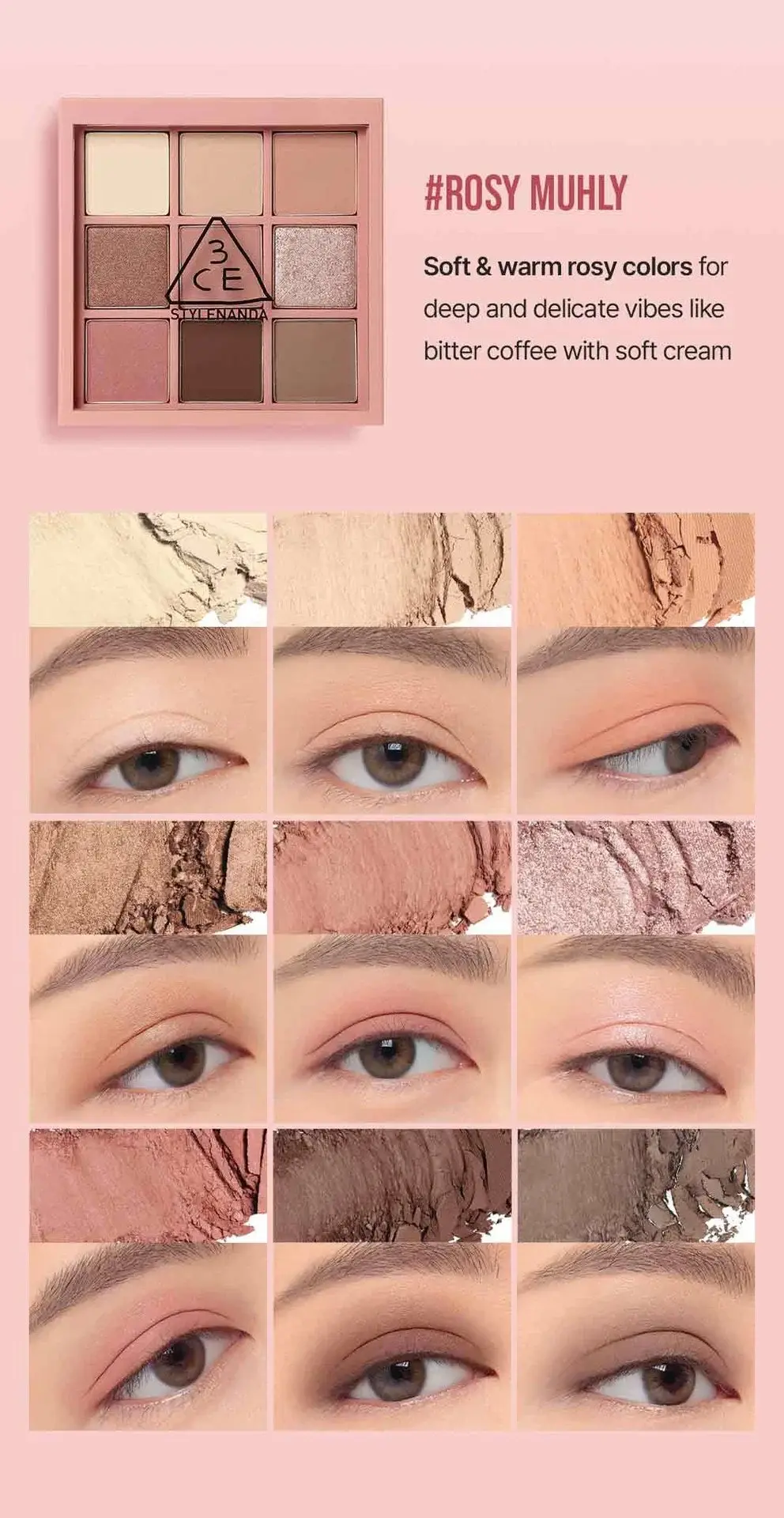 The primary function of the 3CE Multi Eye Color Palette is to provide a versatile collection of nine (or four in the mini version) pigmented shades with various finishes for creating a wide range of eye makeup looks, from natural daily wear to dramatic evening glam. The shades can also be used as blush or highlighter for a complete makeup look.