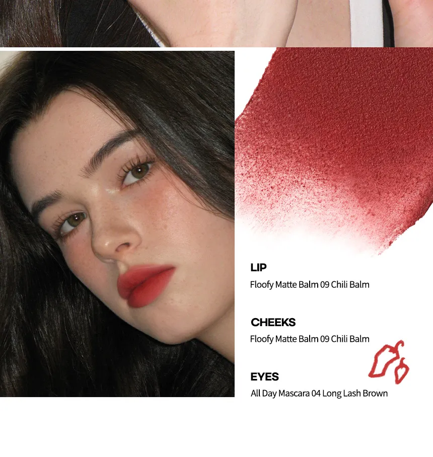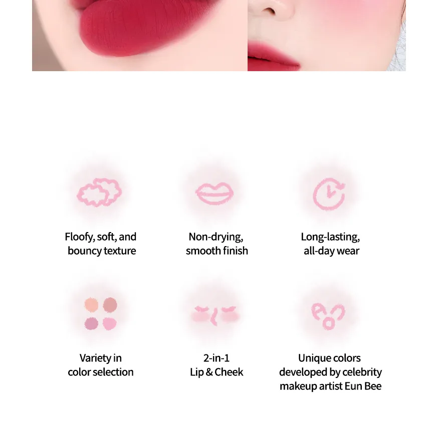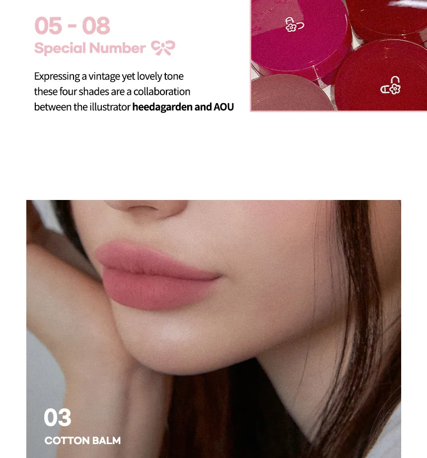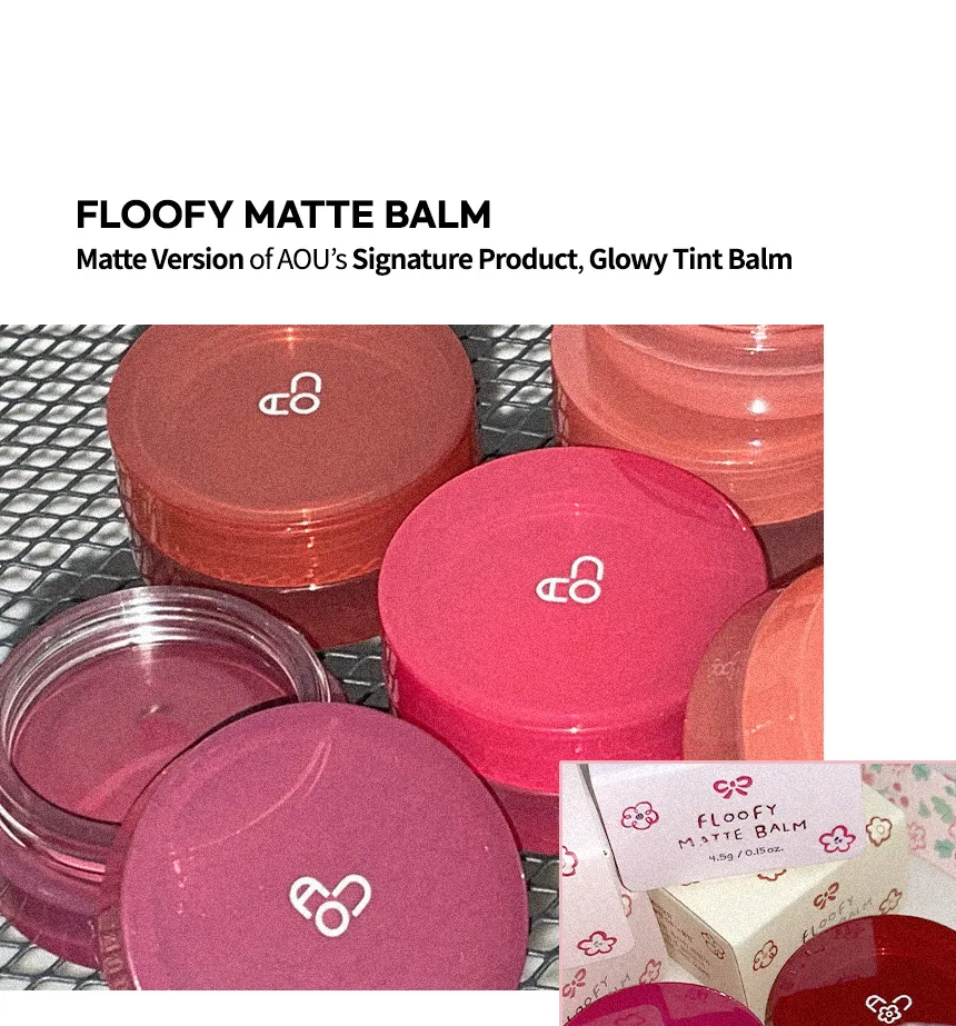 The AOU Floofy Matte Balm is a multi-use 2-in-1 product designed to provide a natural, soft matte color finish and hydration for both the lips and cheeks.