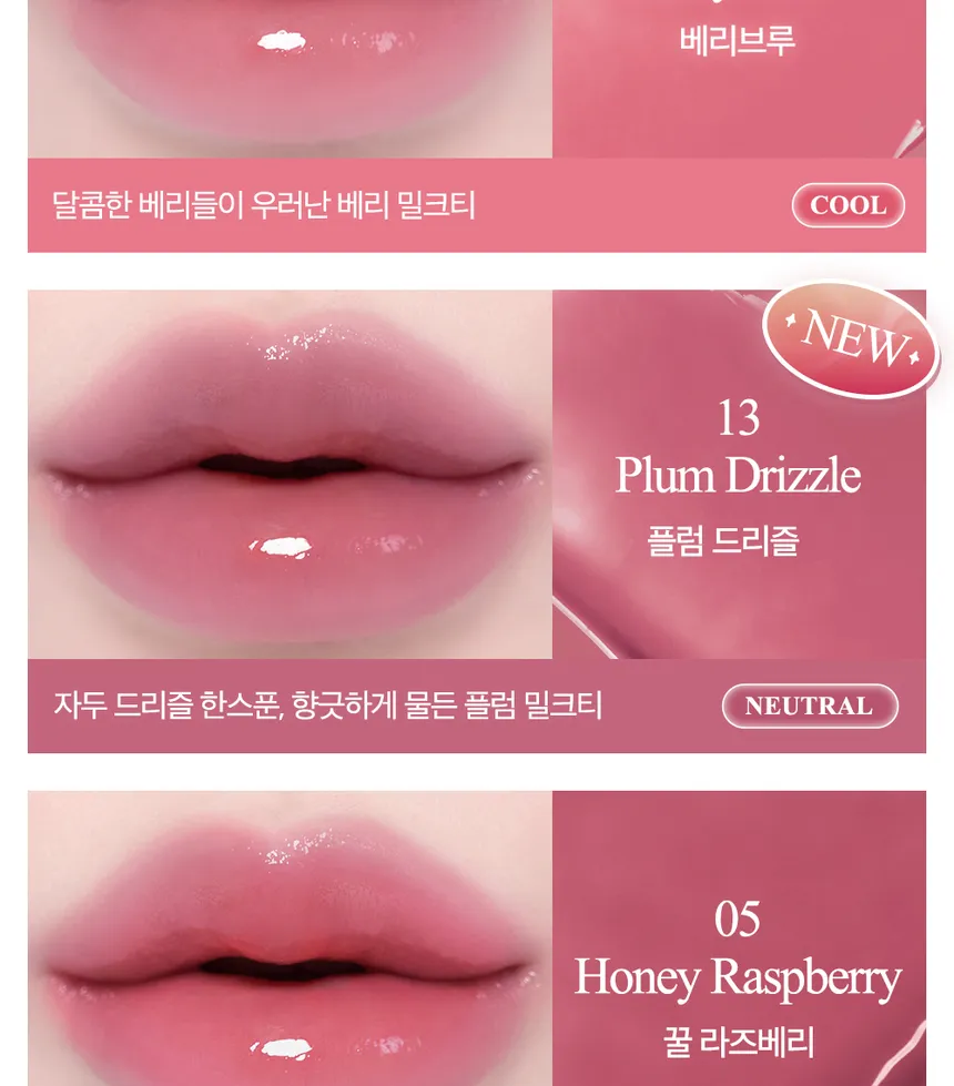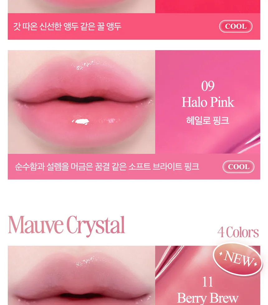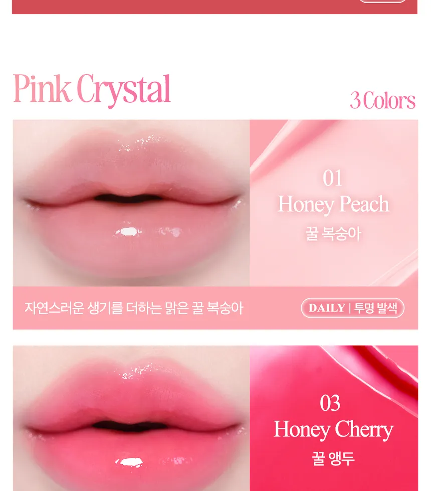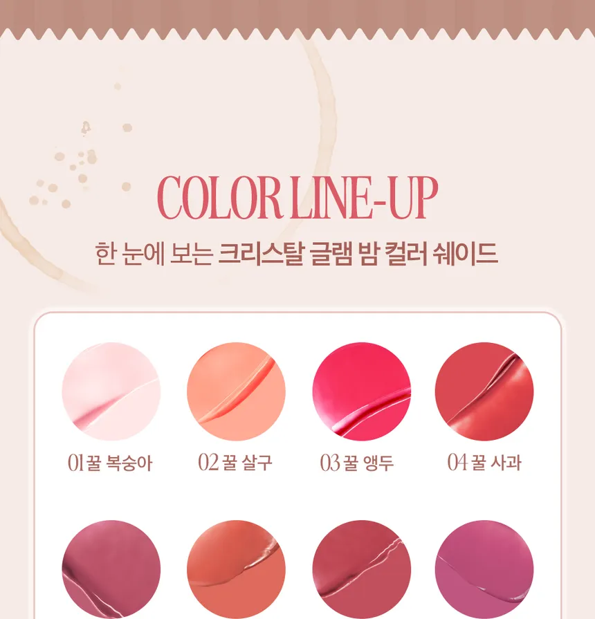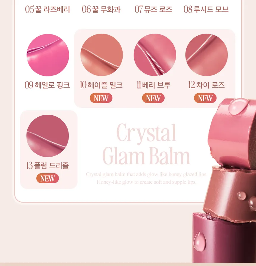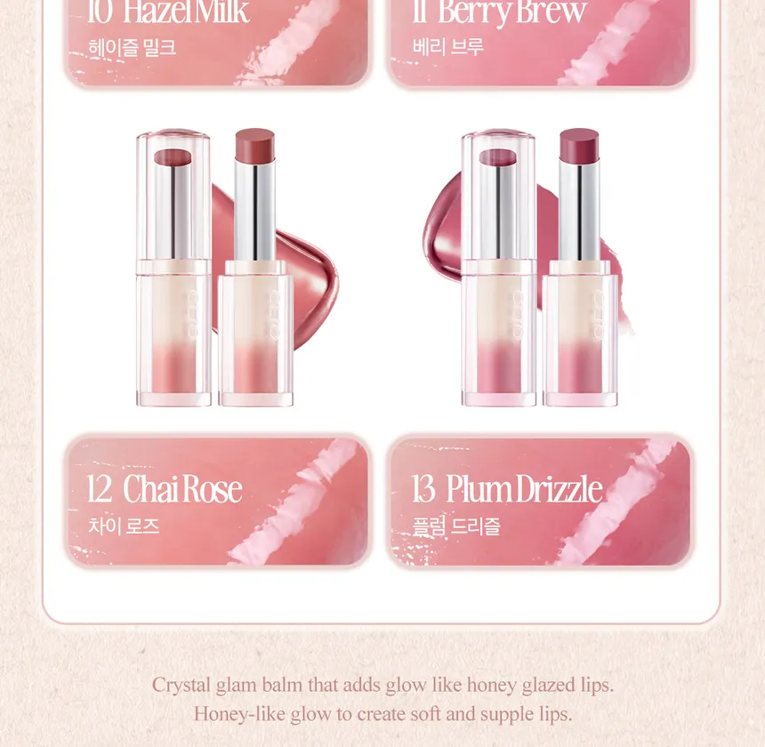 The primary function of the CLIO Crystal Glam Balm is to provide both vivid color and intense hydration to the lips, creating a shiny, plump, "honey-glazed" look. It acts as a hybrid product, combining the nourishing effects of a lip balm with the color and shine of a gloss or tint.