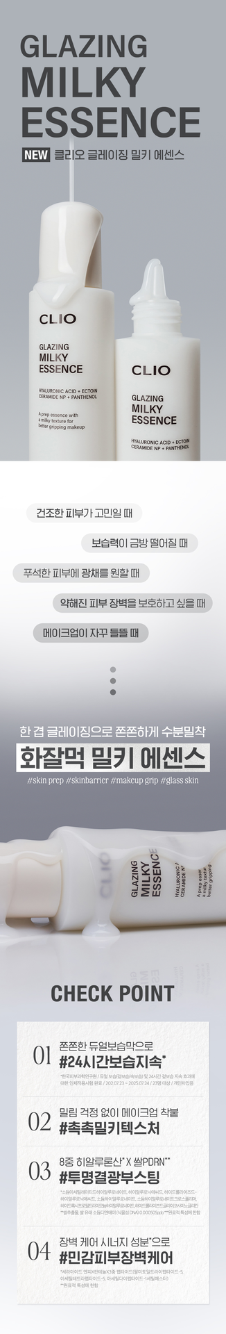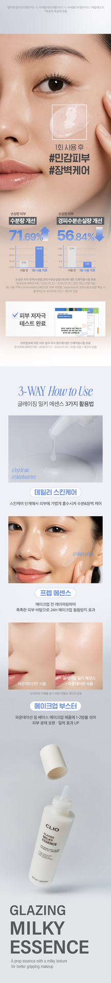The primary function of the CLIO Glazing Milky Essence 120ml is to provide intense, multi-layer hydration and act as a makeup primer, creating a smooth, radiant "glass skin" base that helps foundation adhere better and last longer. It also offers brightening and skin barrier-strengthening benefits.