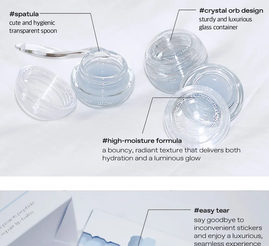 The Glow Peach Peptide Repair Lip Balm is a multi-functional Korean lip treatment designed to intensely hydrate and revitalize the lips through a blend of peptides and botanical extracts.
