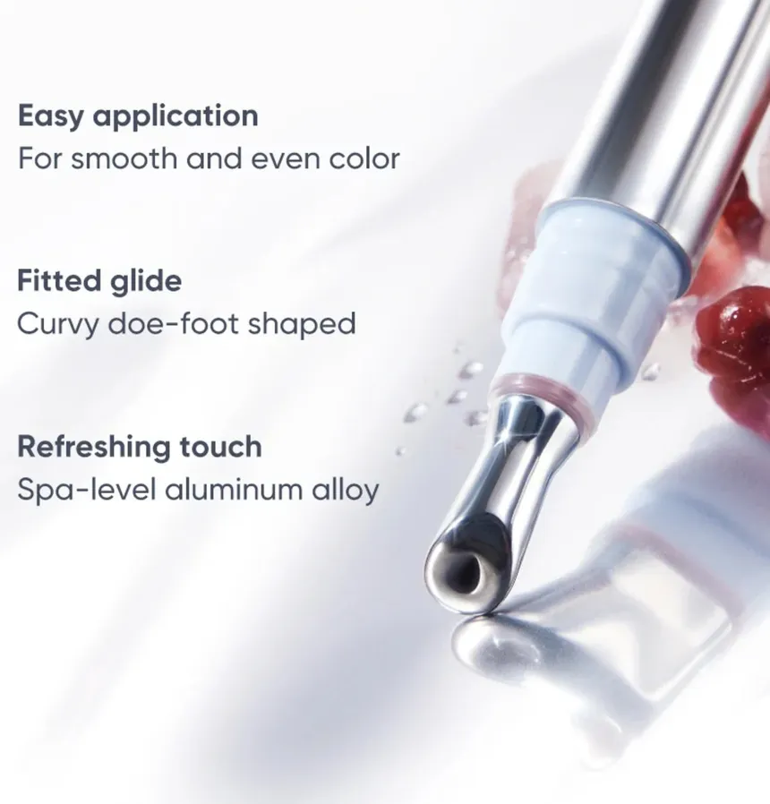- Ergonomic Design: The metallic applicator is curved to fit the ergonomic shape of the lips, ensuring precise and even product distribution.