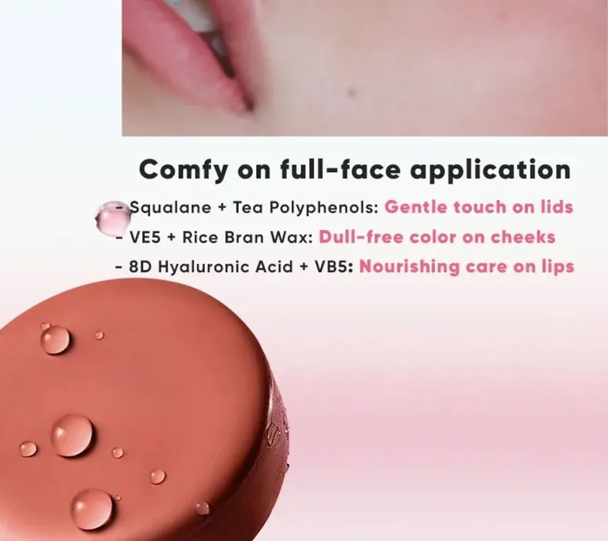 - Multi-Purpose Application: It is specially developed to be used as a creamy eyeshadow, a natural-looking blush, a moisturizing lip tint, or even for subtle contouring depending on the shade chosen.