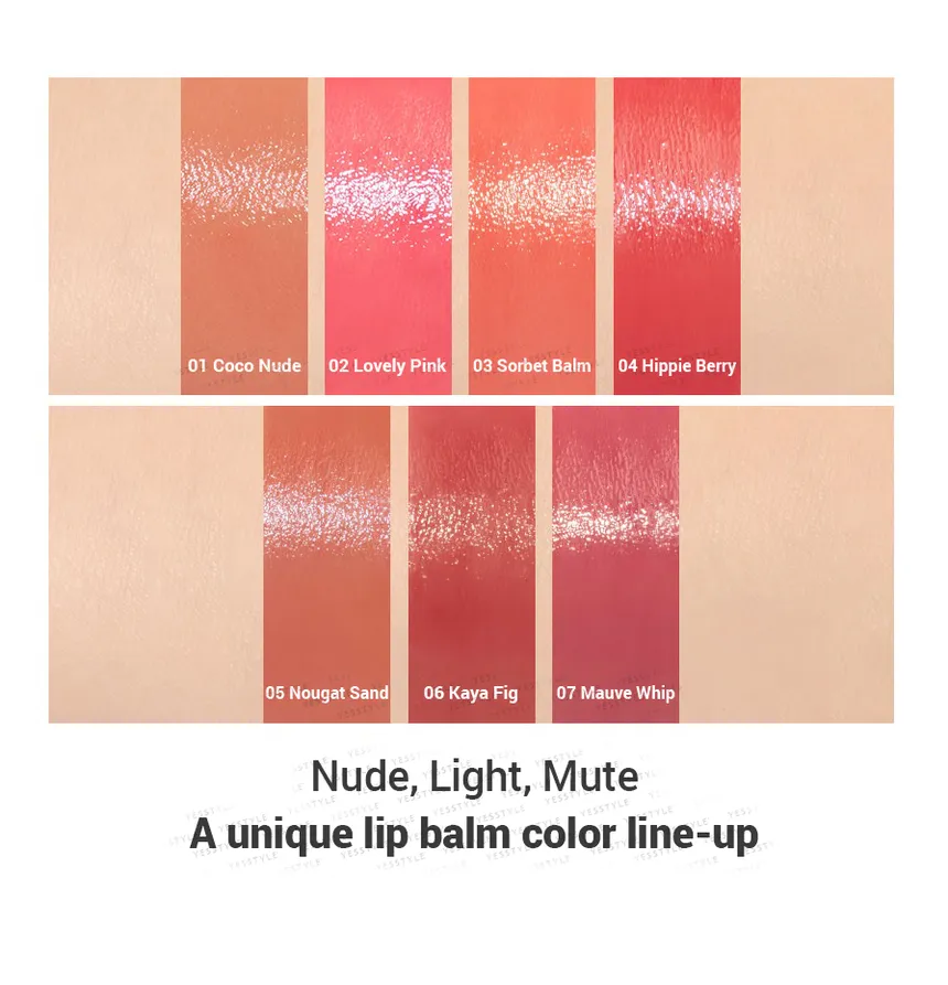 The balm is formulated with a blend of vegan plant-based moisturizing oils, including argan, rosehip, evening primrose, and sweet almond oils. These ingredients work to nourish dry lips, create a moisture barrier to prevent water loss, and ensure lips remain soft and supple. - Glossy, Plump Finish