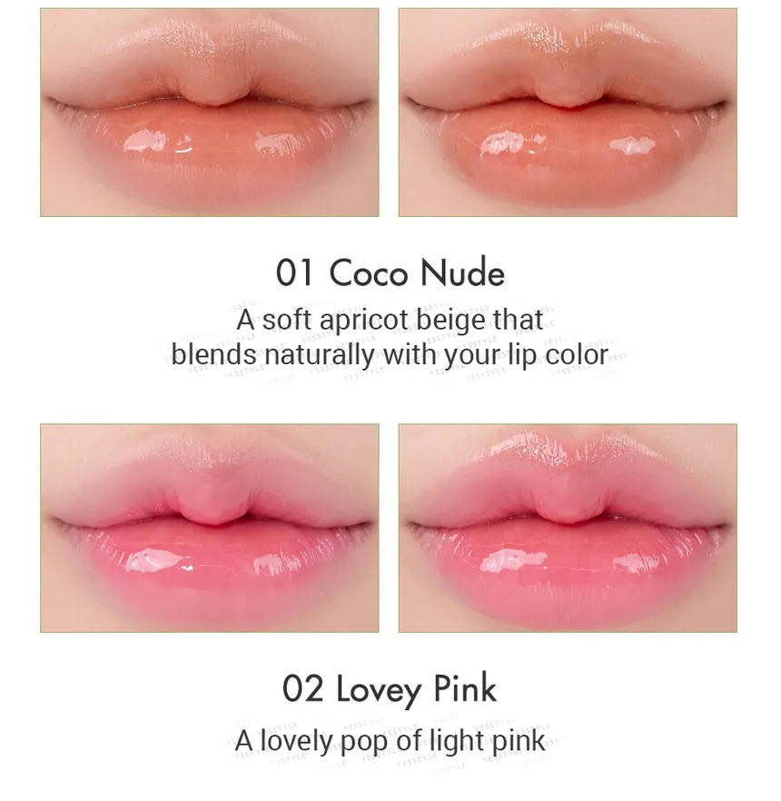 It creates an "elastic water film" over the lips using a specific ratio of oils and waxes to deliver a transparent, high-shine, dewy finish without a sticky or heavy feel. This effect gives the appearance of plumper, "juicier" lips. - Buildable Tint