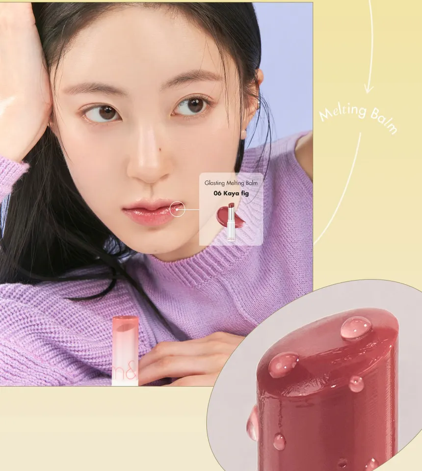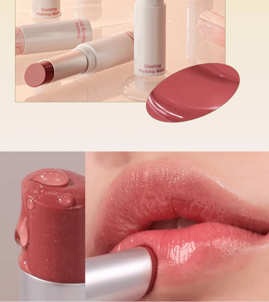The Romand Glasting Melting Balm is a multi-functional, tinted lip balm that provides deep, long-lasting hydration with a vivid, glass-like glossy finish. Its primary function is to combine the moisturizing benefits of a lip balm with the aesthetic appeal of a lip tint and gloss, making lips appear plump and healthy.