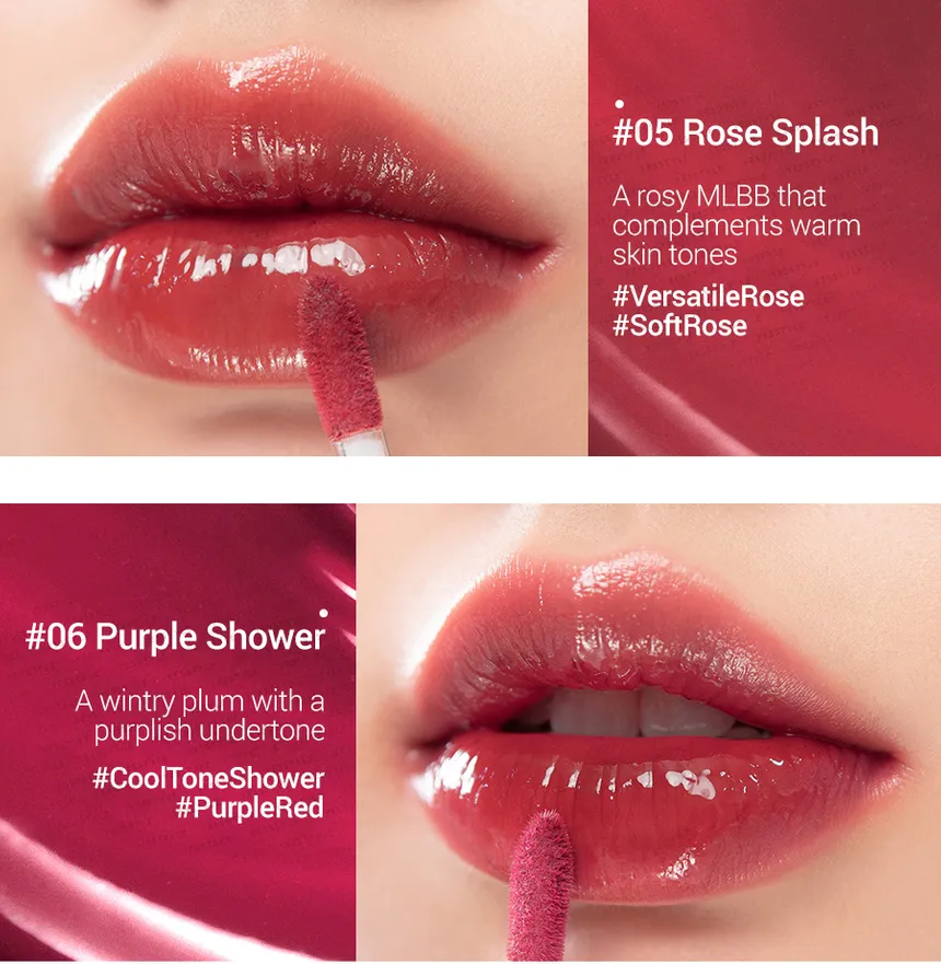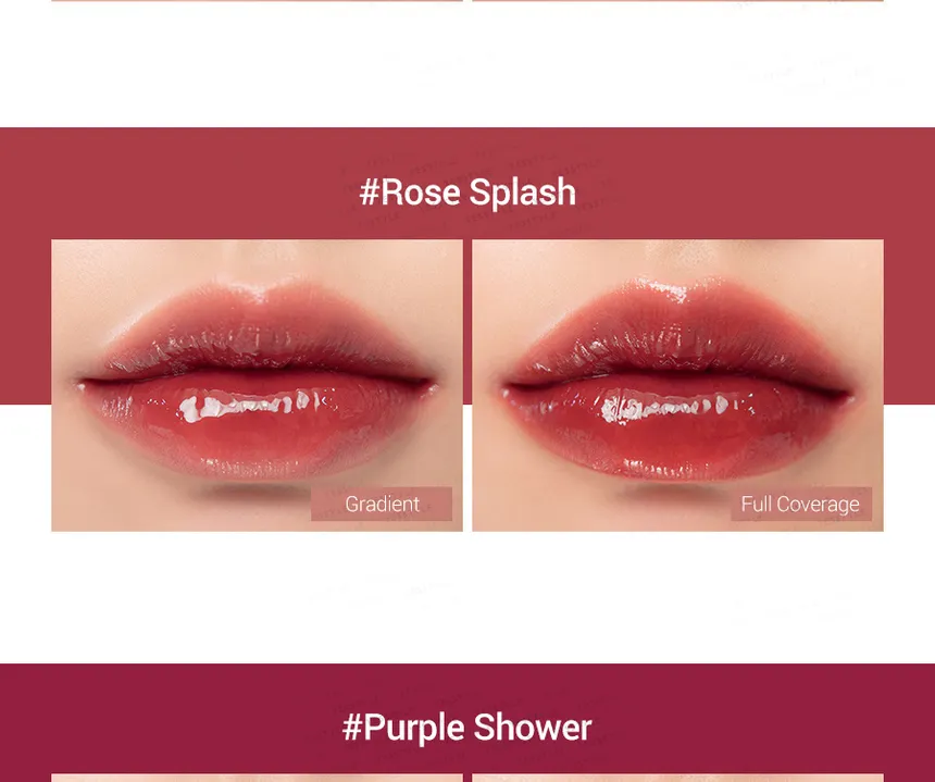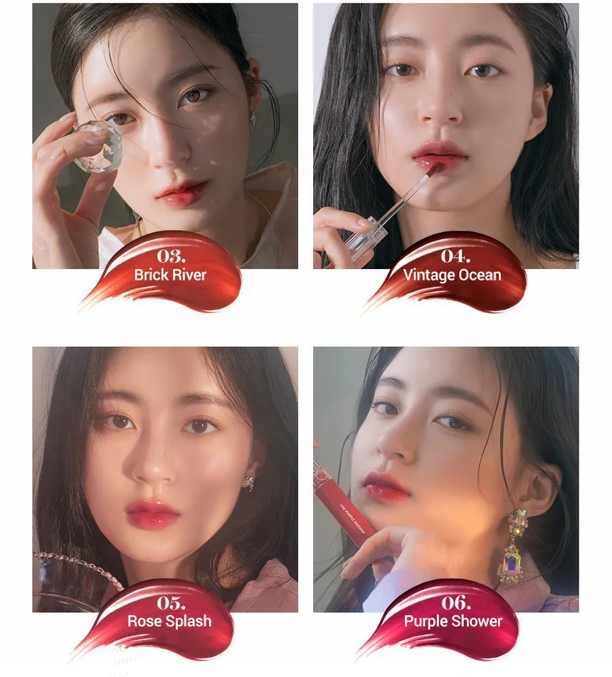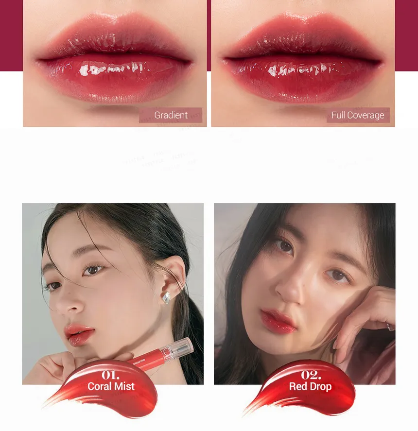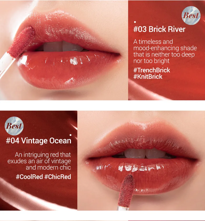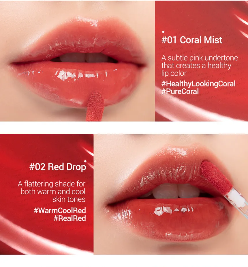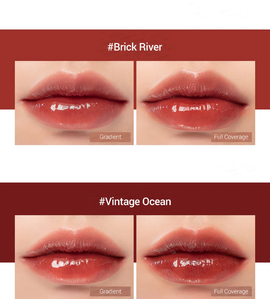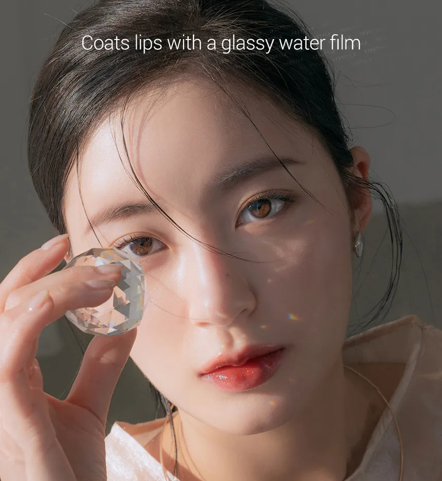 - Glassy Shine Effect: The tint creates a transparent, dewy film on the lips that reflects light to give a plump, "glass-coated" look without the typical stickiness of a gloss.