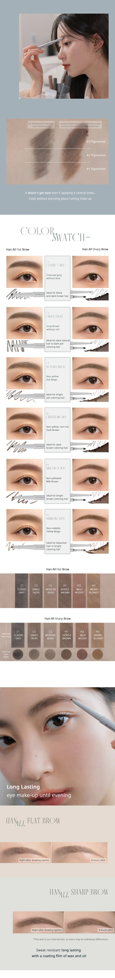 The primary function of the romand Han All Flat Brow is to provide an easy and delicate application for creating neat, natural-looking, and defined eyebrows with its unique flat-shaped lead.