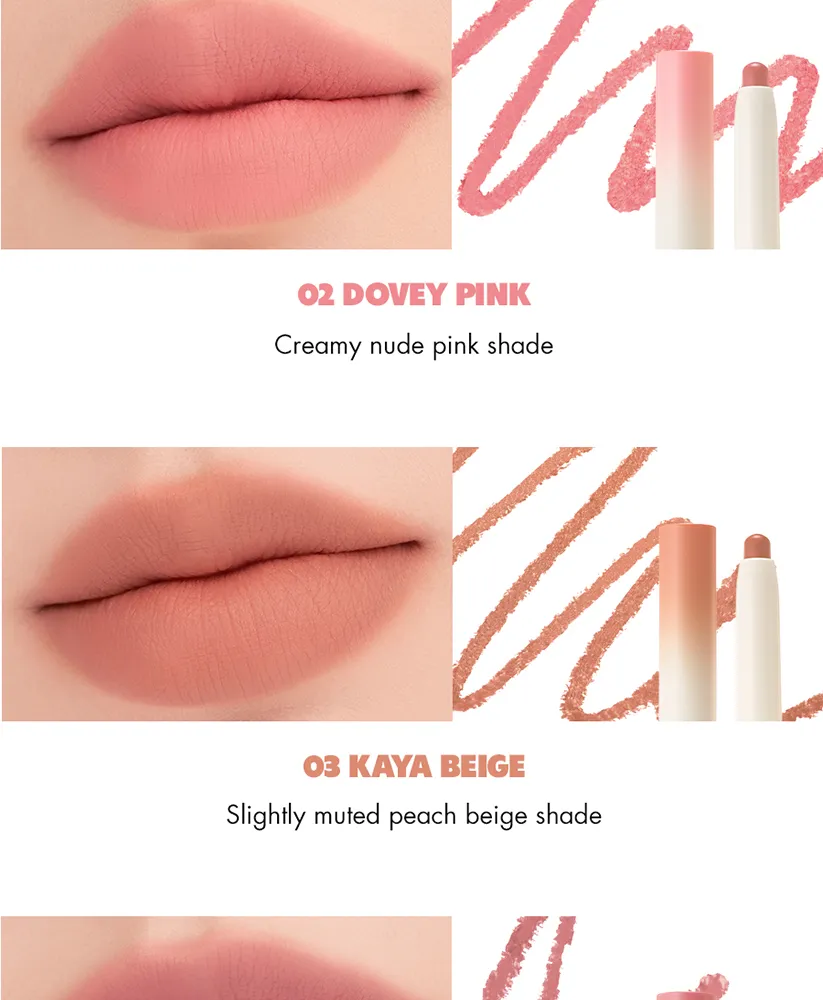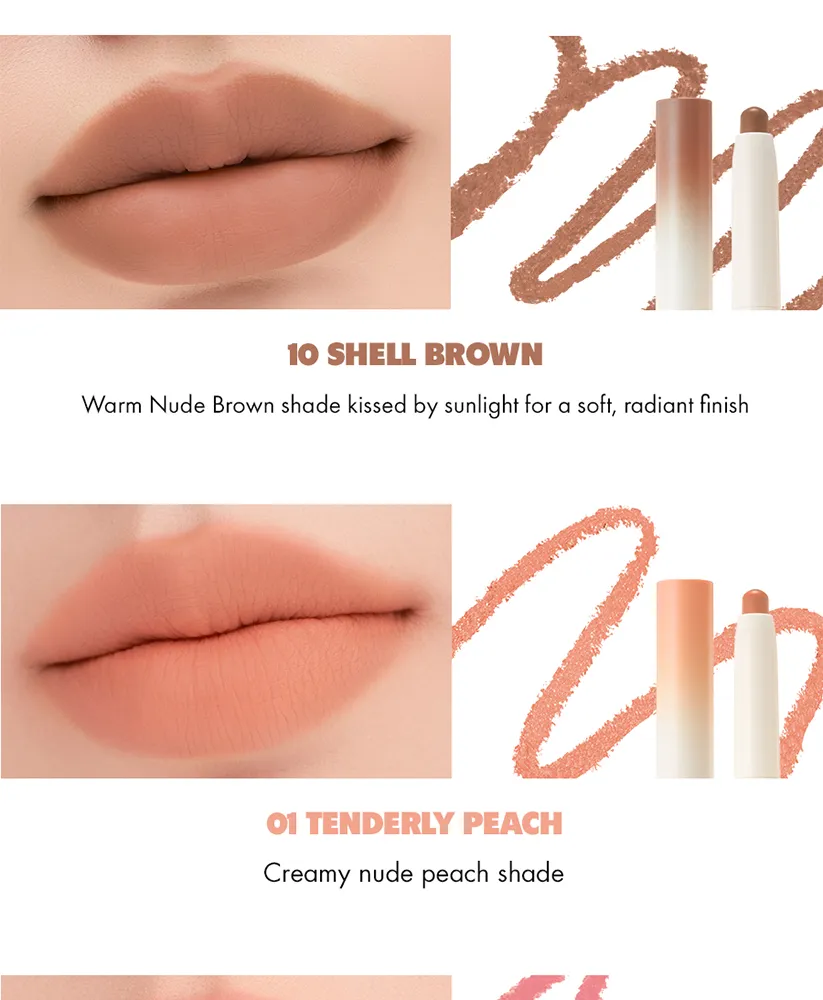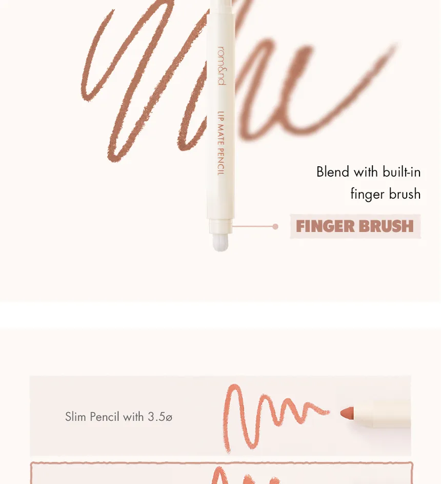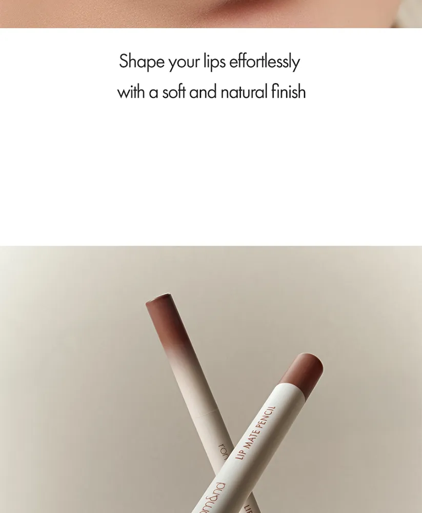 The Romand Lip Mate Pencil is a versatile 2-in-1 lip liner designed to define and enhance the natural shape of the lips for a fuller appearance. It features a creamy, smudge-proof formula and a built-in blending brush for a soft, semi-matte finish.