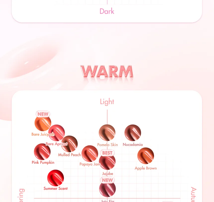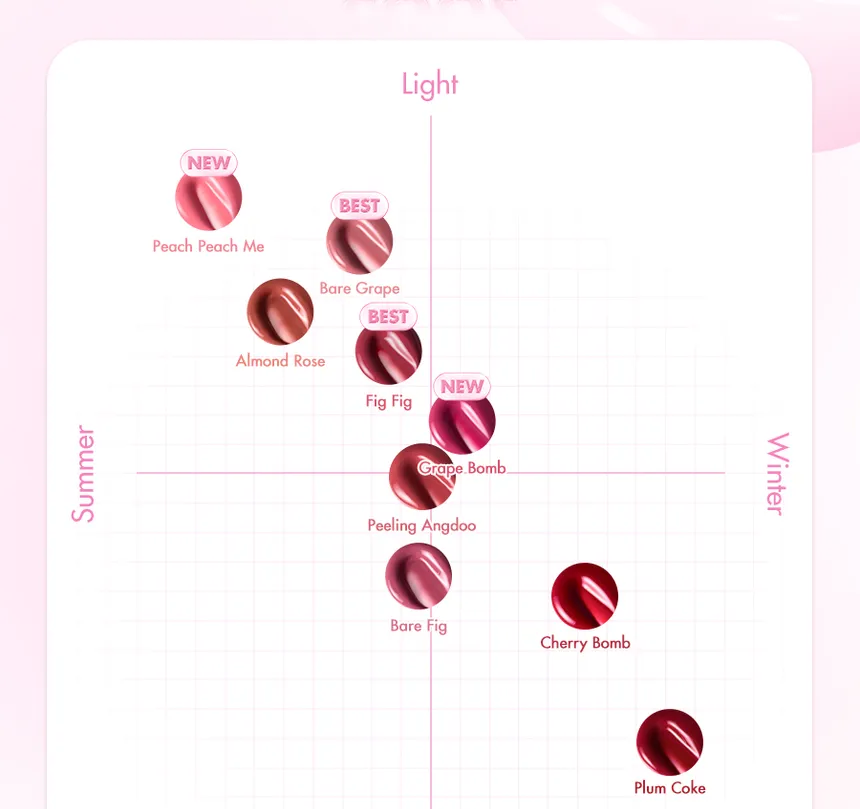 - Fruit-Inspired Shades: The wide range of vibrant colors are inspired by fresh fruits, offering versatile options designed to flatter a variety of skin tones and personal styles.