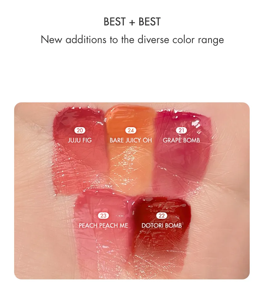 - Glossy Finish: The tint delivers a distinctive high-shine, "glass-like" or "tanghulu-like" (candied fruit) appearance to the lips without feeling sticky or oily. This effect makes the lips look fuller and healthier.